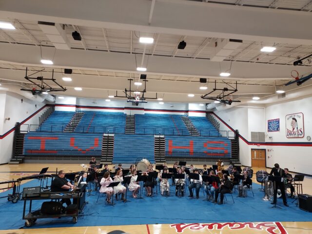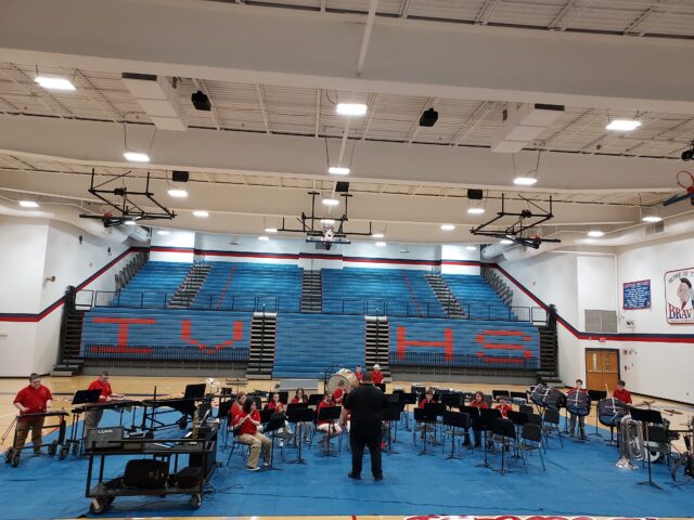 Last night, grades 5-12 had their first concert of 2025! This music booster arrived late and didn’t get to see 5th grade band’s first song. But, it was so much fun to see them come back and join all the other grades for Louie Louie at the end of the concert! Scroll down to see a few photos from last night and a clip of the combined bands playing together!